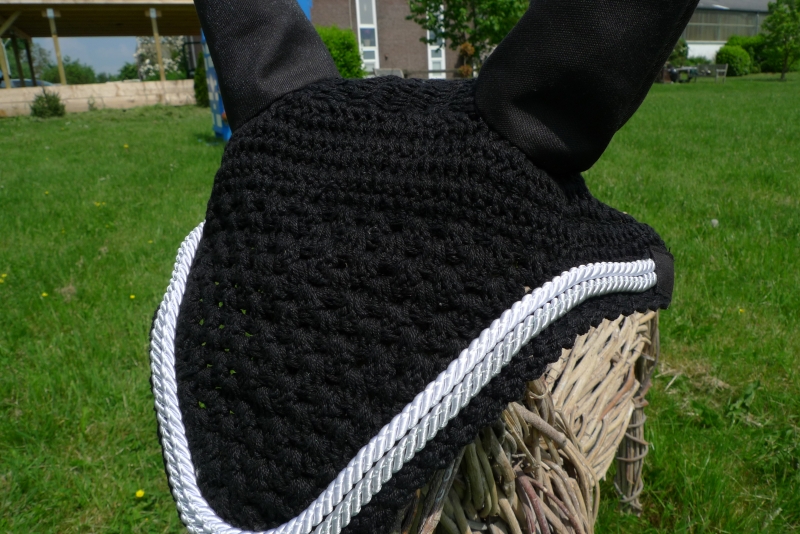 Schabracke schwarz, weiße Biese, kleine WaffelsteppungKlassische, schwarze Tunierschabracke mit kleiner Waffelsteppung. Atmungsaktiv.