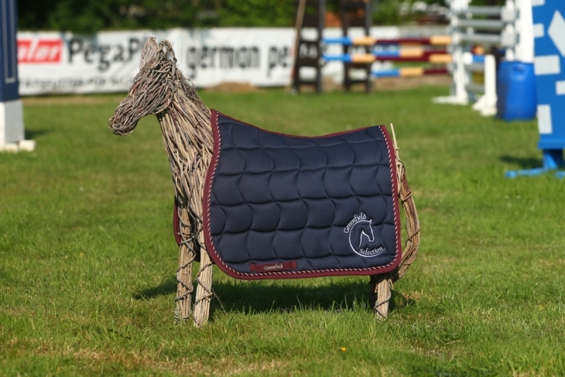 Schabracke grau, 2 Zierkordeln silber/bordeauxrot, bordeauxrote BordeKlassische, graue Schabracke mit Waffelsteppung und doppelter Zierkordel. Atmungsaktiv. Farbe: grau mit 2 Zierkordeln silber/bordeauxrot und bordeauxroter Borde 54,00 EUR (inkl. 21 % MwSt. zzgl. Versandkosten) |