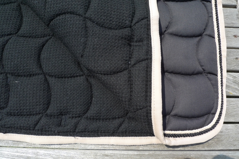 Schabracke schwarz, weiße Biese, kleine WaffelsteppungKlassische, schwarze Tunierschabracke mit kleiner Waffelsteppung. Atmungsaktiv.